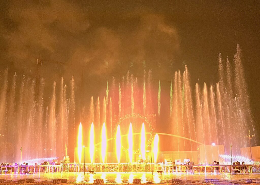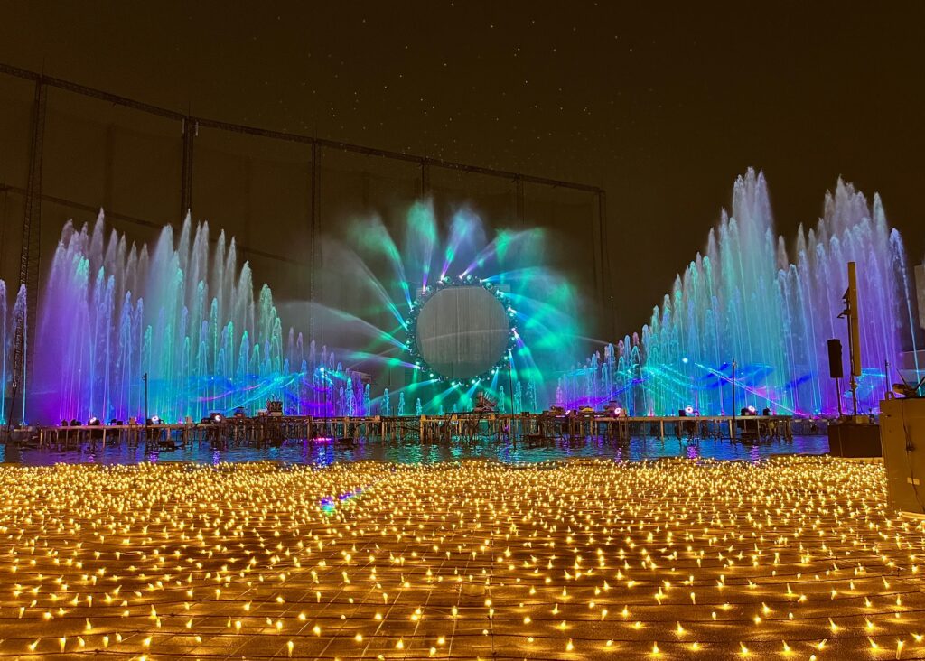 約1,200発の花火と238本の噴水、大音量のロックミュージックで迫力満点!